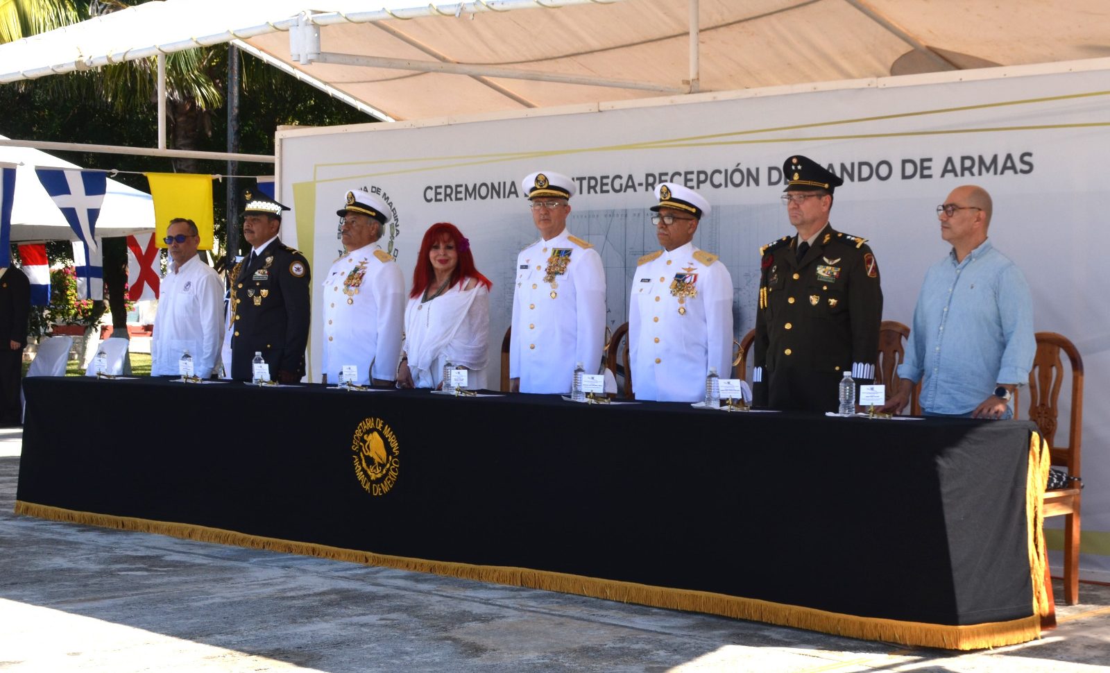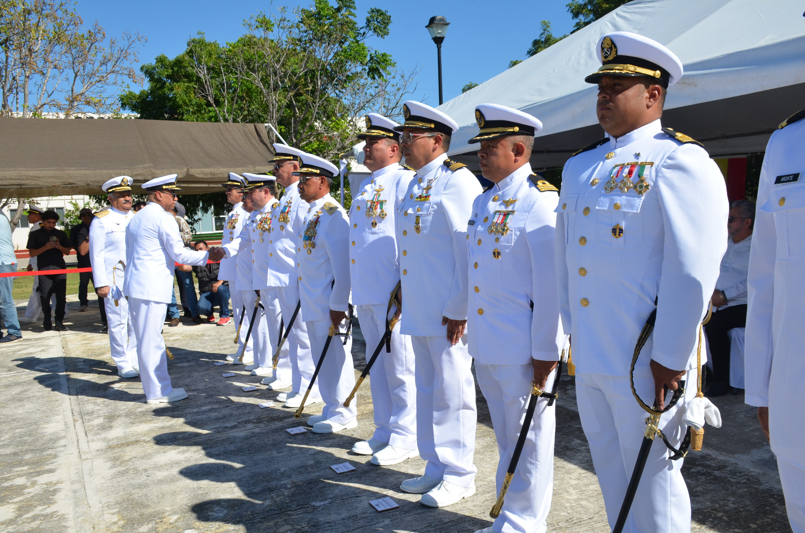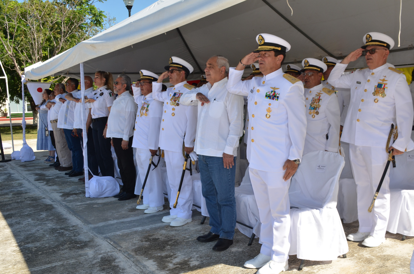 Al evento realizado en las instalaciones navales del poblado de Lerma del municipio de Campeche, acudió la mandataria estatal, Layda Elena Sansores San Román, junto con integrantes de su gabinete como el secretario de Gobierno, Armando Constantino Toledo Jamit, el fiscal del Estado, Jackson Villacís Rosado, y la titular de la Secretaría de Protección y Seguridad Ciudadana (SPSC), Marcela Muñoz Martínez.