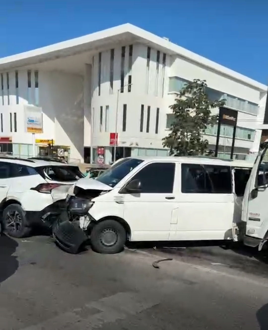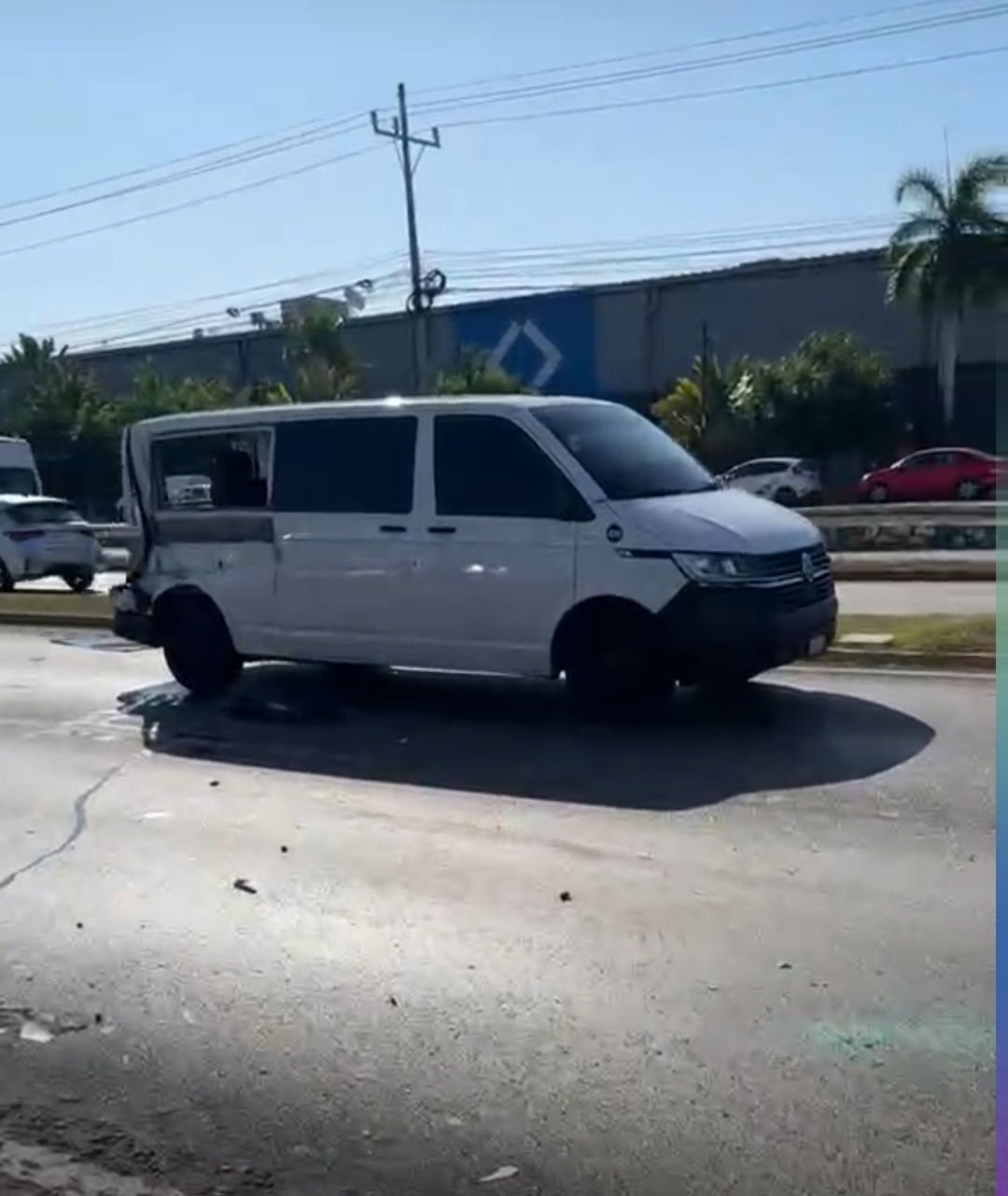La trayectoria descontrolada del vehículo continuó hasta golpear por detrás a una Van turística, que fue prácticamente arrastrada y empujada contra al menos otros cuatro vehículos particulares.