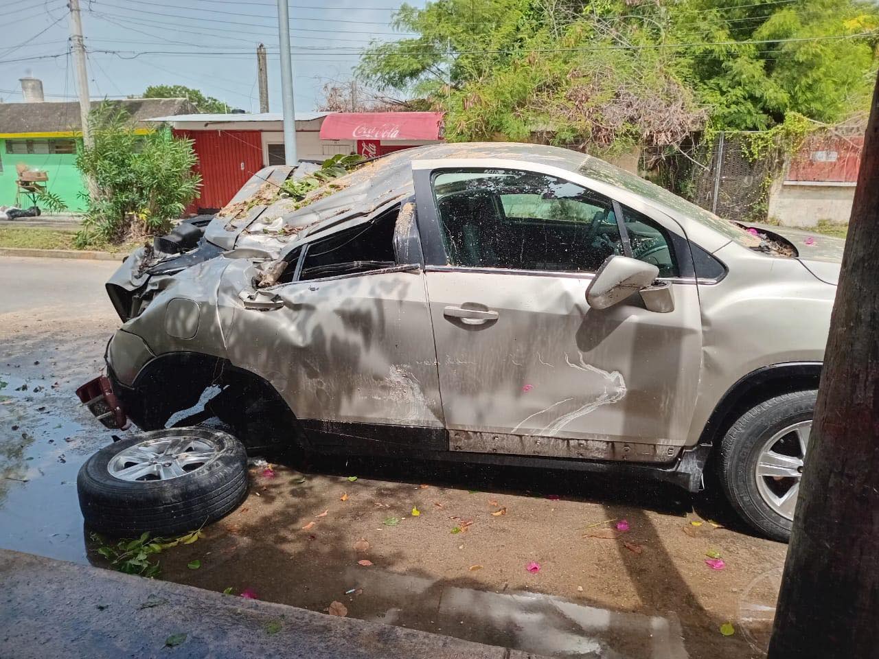 La unidad, una Chevrolet Trax color arena, se encontraba estacionada sobre la avenida Francisco I. Madero, entre las calles Carmen Ochoa de Merino y Othón P. Blanco, cuando fue aplastada por el árbol que se desprendió desde la raíz debido a la fuerza del viento. Como resultado, el vehículo fue declarado pérdida total.