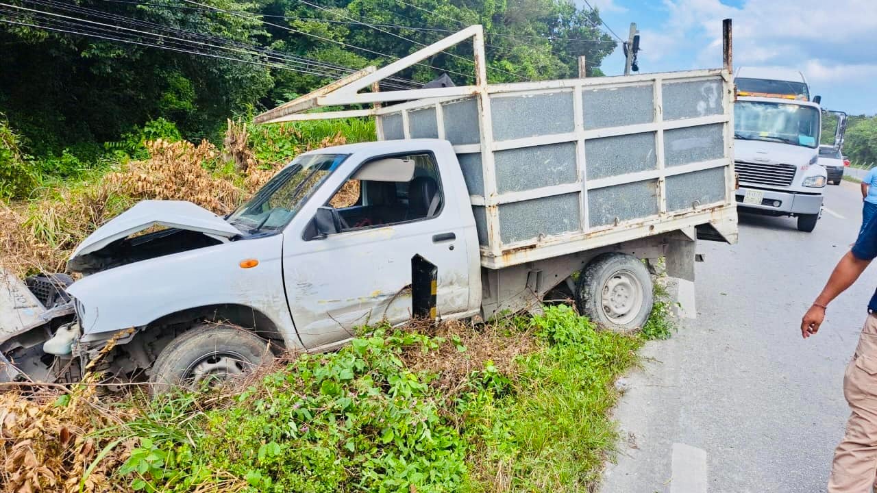 El percance ocurrió cuando una camioneta de estaquita color blanca, con placas CM-5047-A de Campeche, se salió del camino y chocó contra el poste, derribándolo por el impacto. A bordo del vehículo viajaban dos personas, quienes resultaron ilesas.