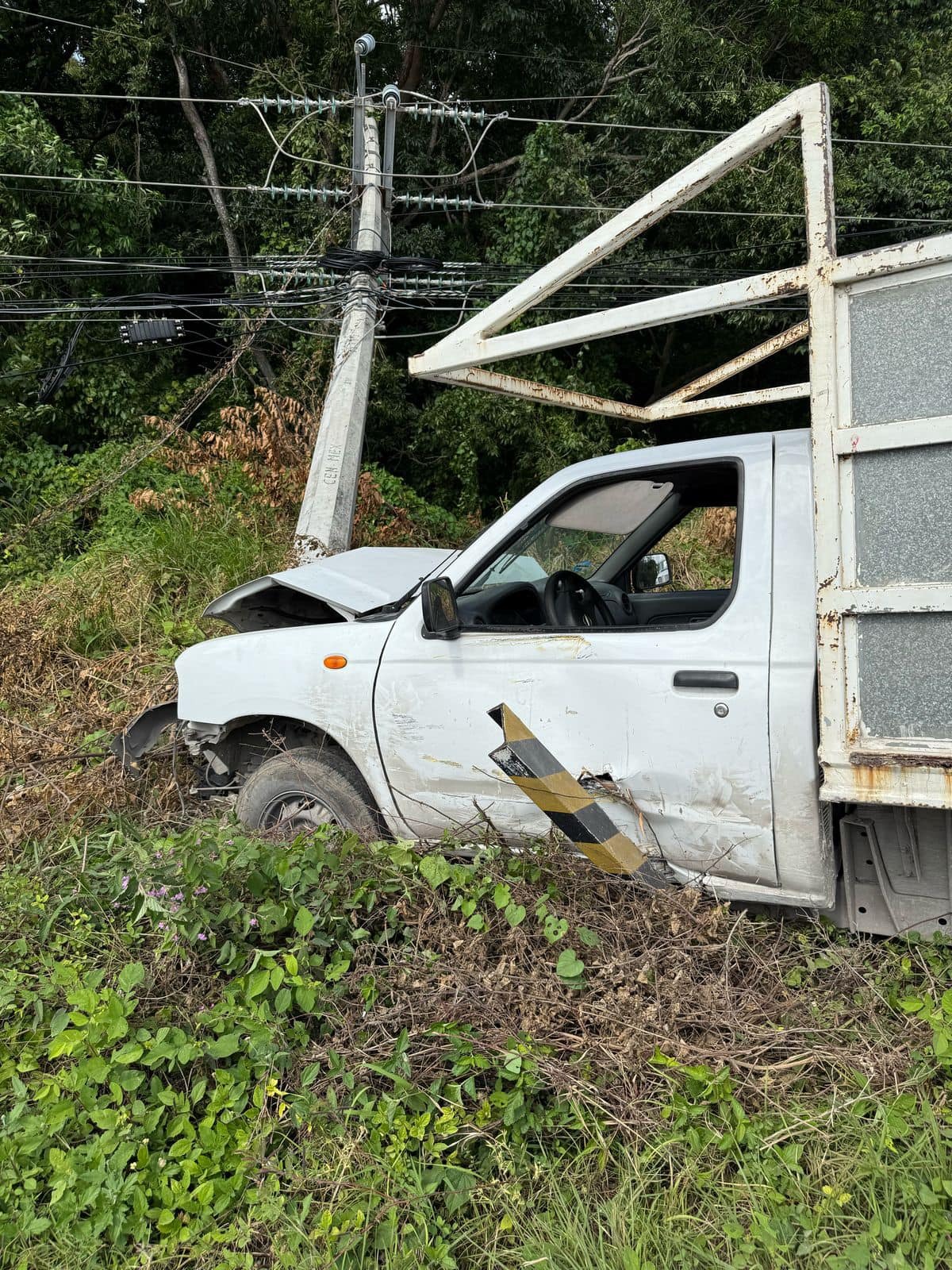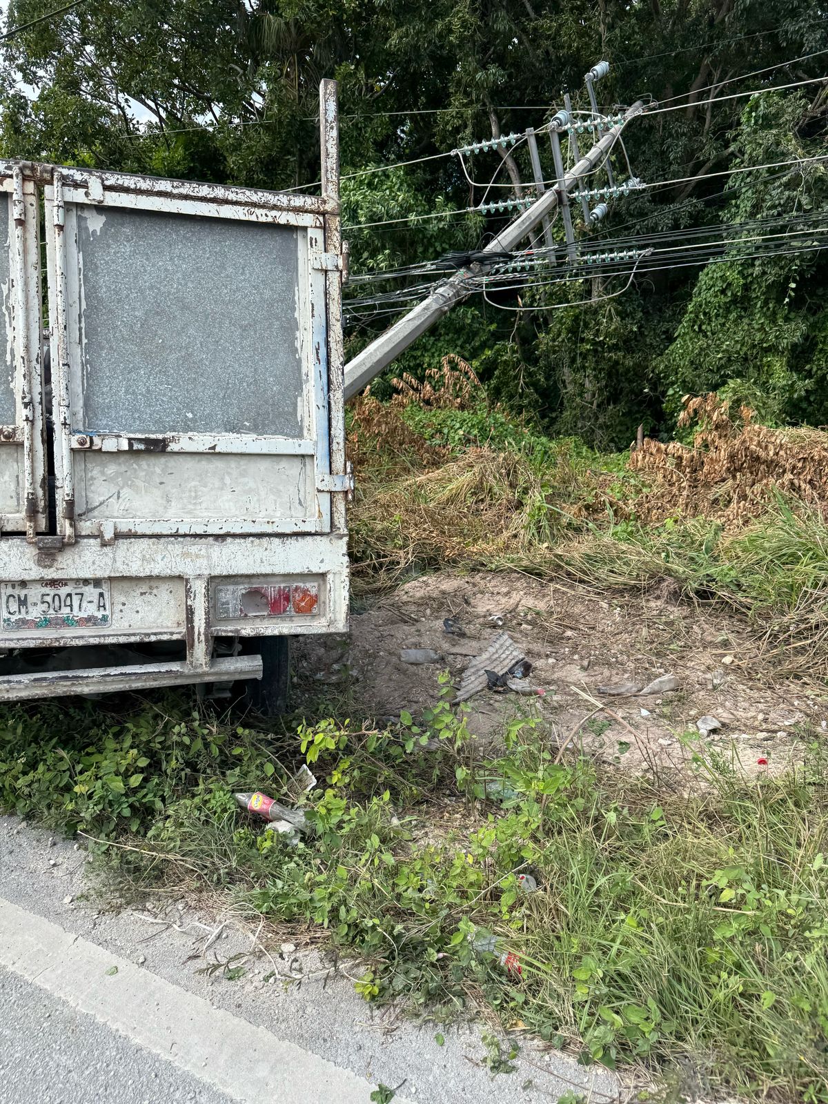 Camioneta Derriba Poste de Alta Tensión en la Carretera Chemuyil-Tulum