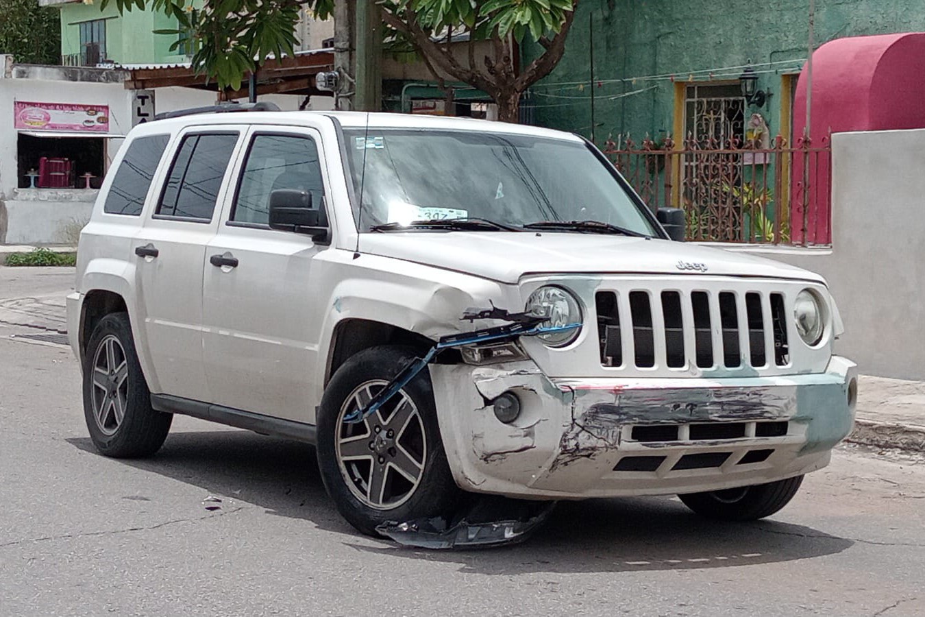MÉRIDA, YUC. a 26 de julio.- Desbaratado del frente quedó un auto Mirage luego de que una camioneta Patriot lo chocó en la esquina de las calles 62 y 115 de la colonia Castilla Cámara, al sur de Mérida. La culpa del percance fue del guiador del primer vehículo por no respetar una señal de alto.