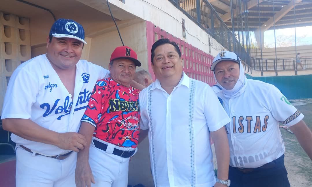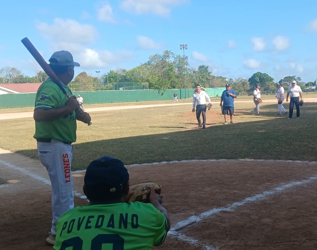El regidor Antonio Chuc Hernández lanzó la bola inaugural, teniendo como bateador a Renán Cruz Ramírez, titular del Instituto Municipal del Deporte (IMD) portomorelense.