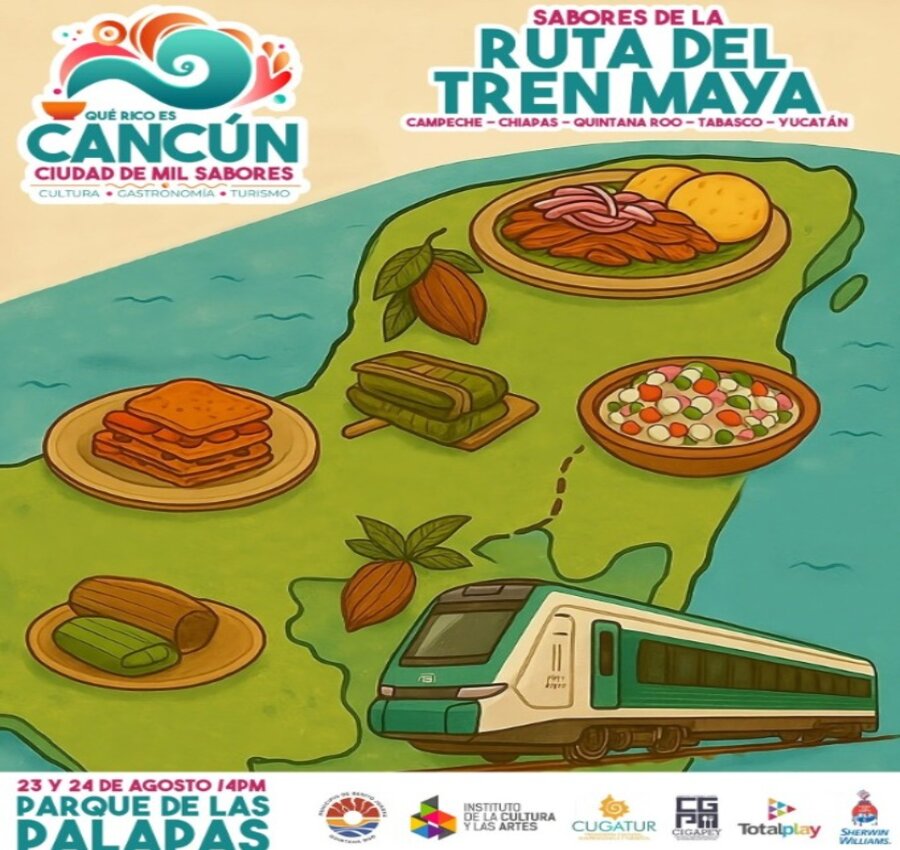 Cancún, Quintana Roo, 18 de Agosto del 2025.- Este 23 y 24 de agosto, el Parque de las Palapas será sede de la segunda edición de “Qué Rico es Cancún”, un evento que rendirá homenaje a los sabores y tradiciones de los estados que conforman la ruta del Tren Maya.