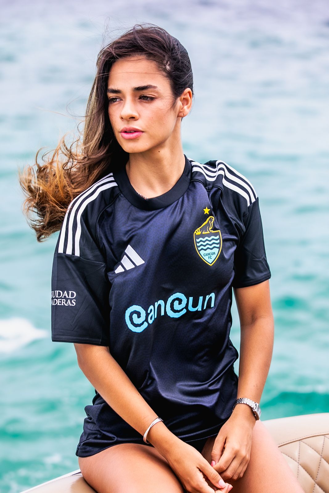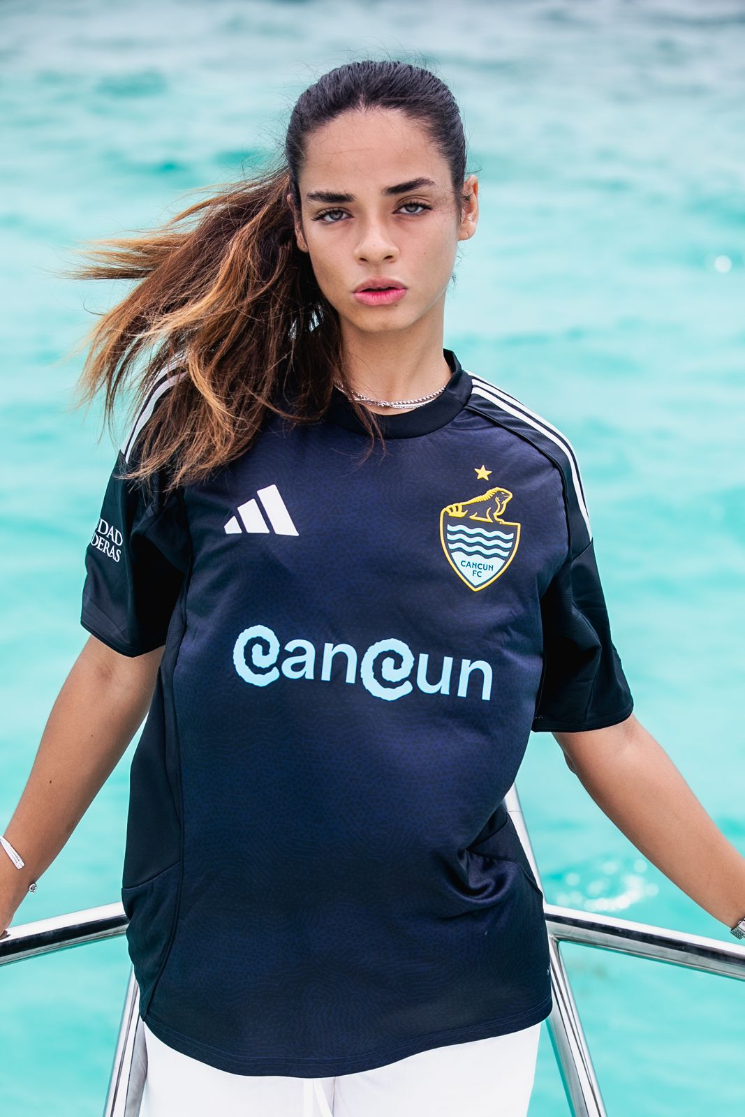 Simboliza la fuerza, historia y orgullo, la sombra del mar al anochecer, como parte de su belleza. Así, nace la equipación denominada ‘Caribbean Shadow’. Por si fuera poco, la marca ‘Cancún’ y característica tipografía al centro en color azul turquesa, evoca las aguas cristalinas, cielos infinitos y vibrante cultura maya de la región.