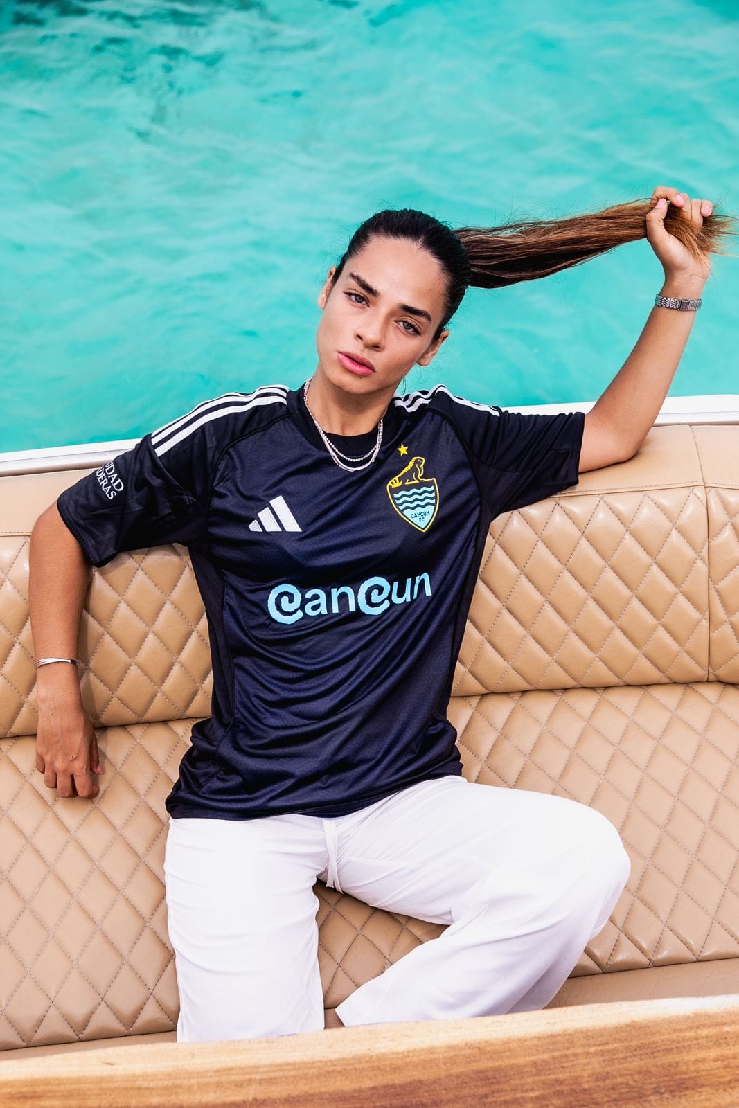Simboliza la fuerza, historia y orgullo, la sombra del mar al anochecer, como parte de su belleza. Así, nace la equipación denominada ‘Caribbean Shadow’. Por si fuera poco, la marca ‘Cancún’ y característica tipografía al centro en color azul turquesa, evoca las aguas cristalinas, cielos infinitos y vibrante cultura maya de la región.