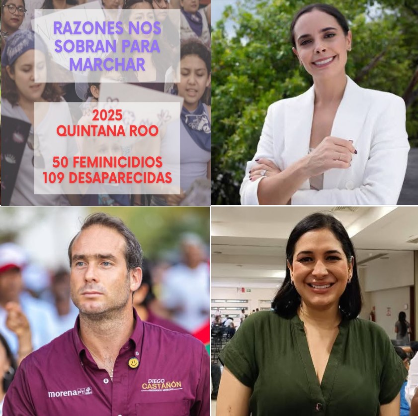 Pero Tulum es el peor caso, pues antes del 2025 no aparecía en los primeros tres lugares de municipios con más feminicidios y desapariciones de mujeres, sino que este tercer lugar negro es logro total del gobierno del apático Diego Castañón Trejo, quien está al frente del ayuntamiento desde el 2023 a medias, porque cada fin de semana se va a San Pedro Garza García, Nuevo León.
