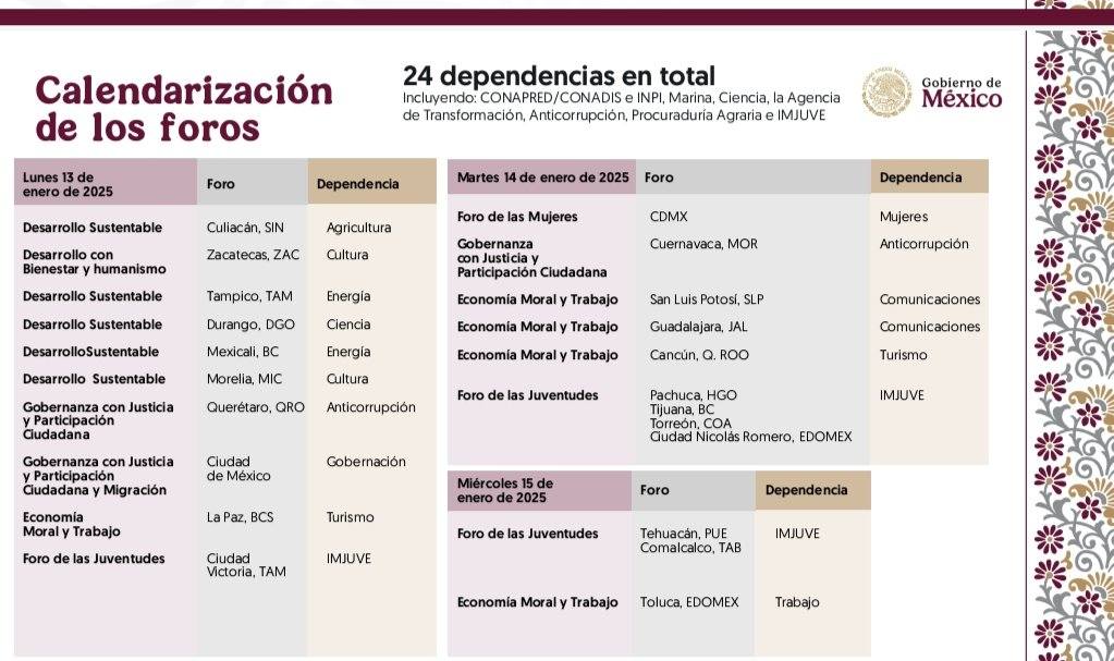 Los sitios y sedes precisas de los foros en cada ciudad se publicarán a partir del 6 de enero en el sitio web del gobierno de México.
