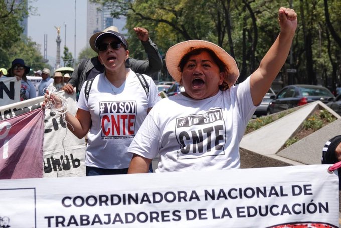 En el pliego petitorio de la CNTE destacan la abrogación de las pensiones individualizadas para maestros y la eliminación del sistema de ingreso mediante exámenes, así como un alza salarial del 100 por ciento y la basificación.