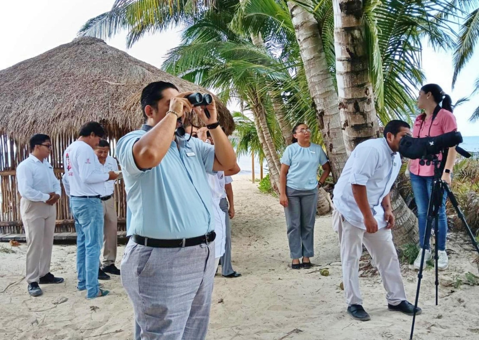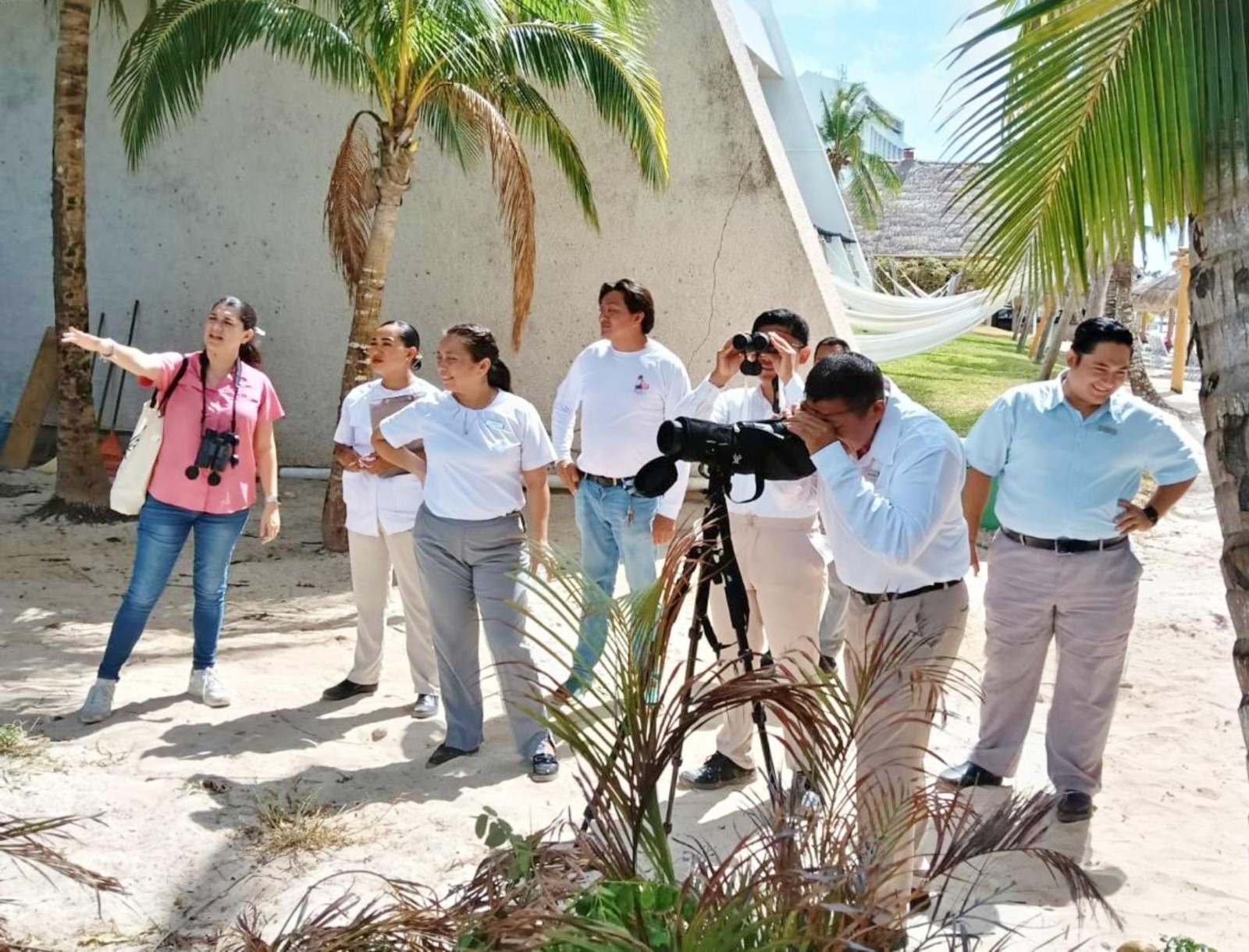 La actividad fue coordinada por la Jefa del Departamento de Educación Ambiental, Paulina Sabido Villanueva y el encargado del Campamento Tortuguero Punta Sur, Ricardo Peralta Muñoz, de la Dirección de Conservación y Educación Ambiental (CEA), quienes organizaron una práctica de observación de aves en las áreas verdes y las inmediaciones del complejo turístico, donde se identificaron 13 especies diferentes, entre ellas el Pavito Migratorio (Setophaga ruticilla), la Paloma Corona Blanca (Patagioenas leucocephala), el Tirano Pirirí (Tyrannus melancholicus) y el Colibrí Garganta Negra (Anthracothorax prevostii).
