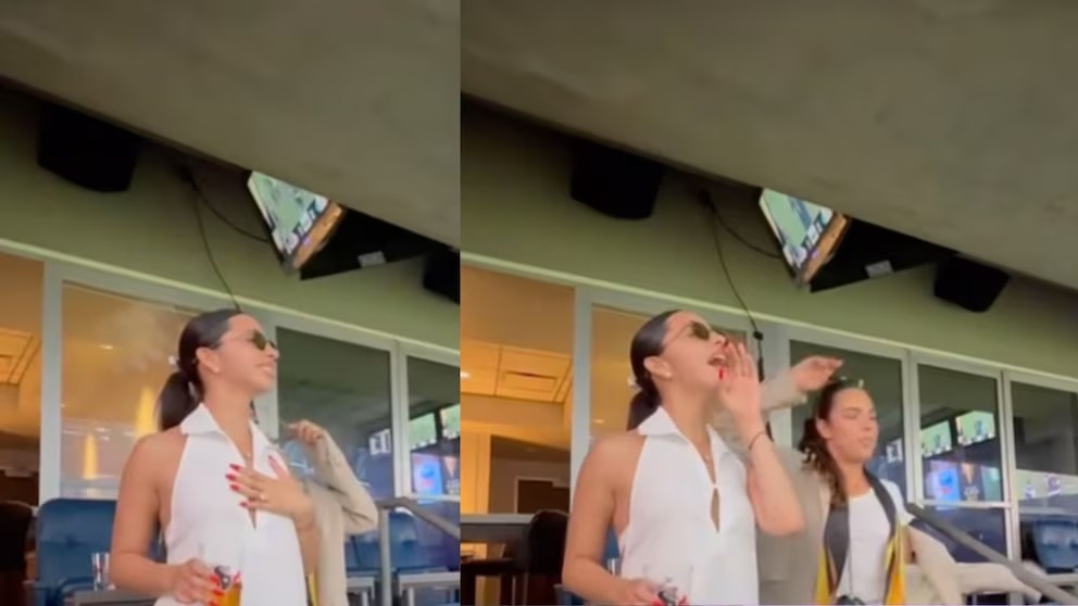 Durante el evento, la intérprete de “El Equivocado” fue grabada por asistentes mientras alentaba al equipo nacional y compartía comentarios con su hermano Leonardo. En otra parte del encuentro, posó para selfies junto a su hermana Aneliz y una amiga que las estaba acompañaba.