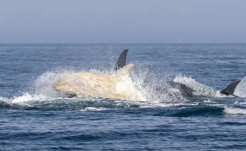 Un fotógrafo captura el raro momento en que una orca albina emerge del agua, revelando su silueta única y sorprendiendo al mundo con su inusual apariencia