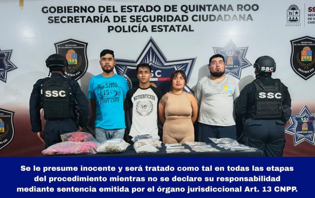 CANCÚN, Q. Roo, 7 de marzo de 2025.- Un operativo de rutina policial terminó con la captura de cuatro presuntos narcomenudistas en las inmediaciones de la Supermanzana 84, en una acción que dejó al descubierto la distribución de drogas en la zona.