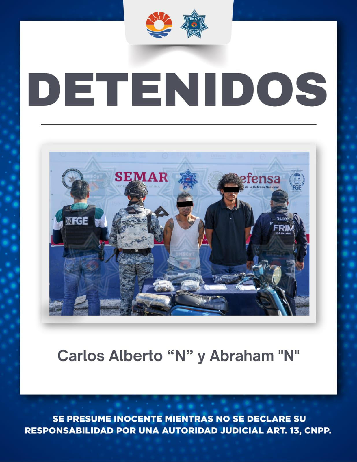 La detención de los sospechosos ocurrió en la Supermanzana 248, donde las corporaciones realizaban labores conjuntas de prevención y vigilancia.