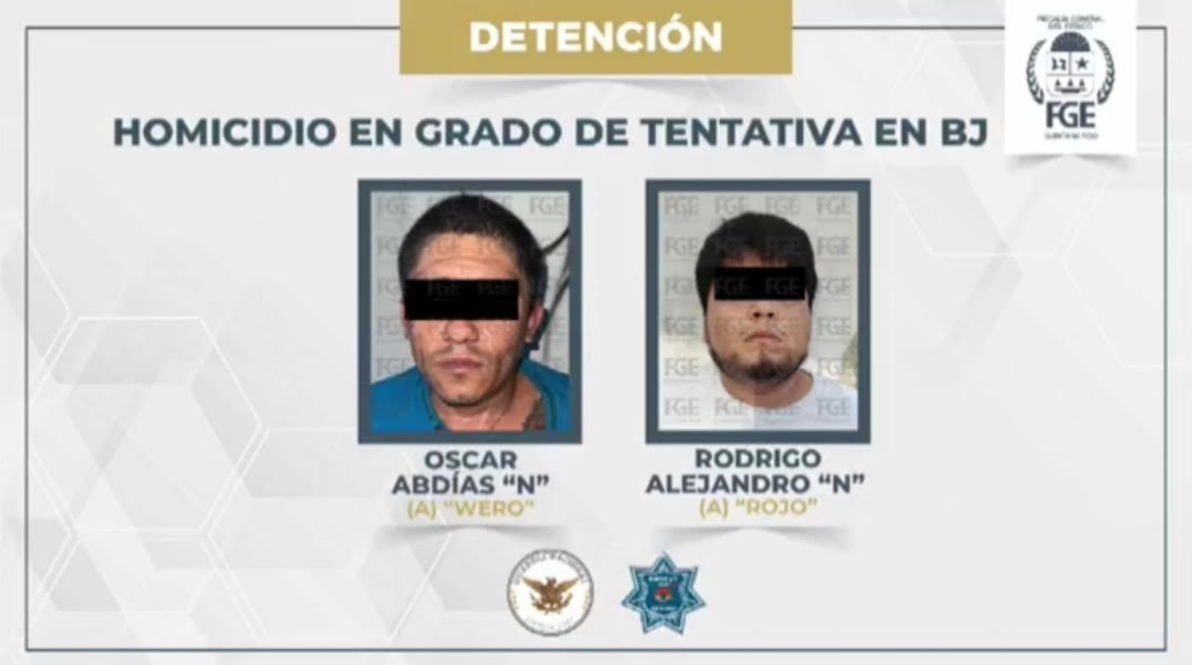 Cancún, 26 de enero. – El fiscal Raciel López Salazar informó sobre la detención de dos hombres realizada por la Policía de Investigación de la Fiscalía, la Guardia Nacional y la Policía Municipal de Benito Juárez. Los sujetos, identificados como Oscar Abdias N, originario de Tabasco, y Rodrigo Alejandro N, alias El Rojo, fueron interceptados cuando se desplazaban a bordo de una motocicleta tipo cross en posesión de marihuana.