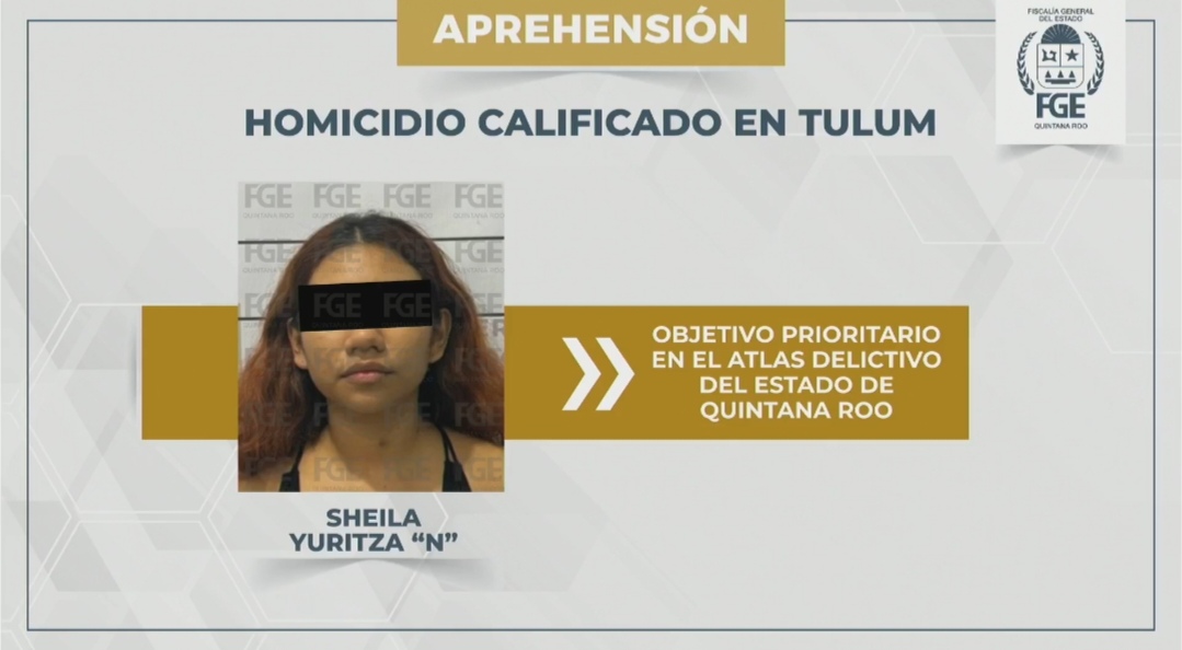 Felipe Carrillo Puerto, 2 de febrero. – La Fiscalía General del Estado, a través de elementos de la Policía de Investigación, cumplimentó una orden de aprehensión en Felipe Carrillo Puerto contra Sheila Yuritza N, una joven de apenas 19 años de edad, señalada por su probable responsabilidad en el delito de homicidio calificado en agravio de un hombre en el municipio de Tulum.