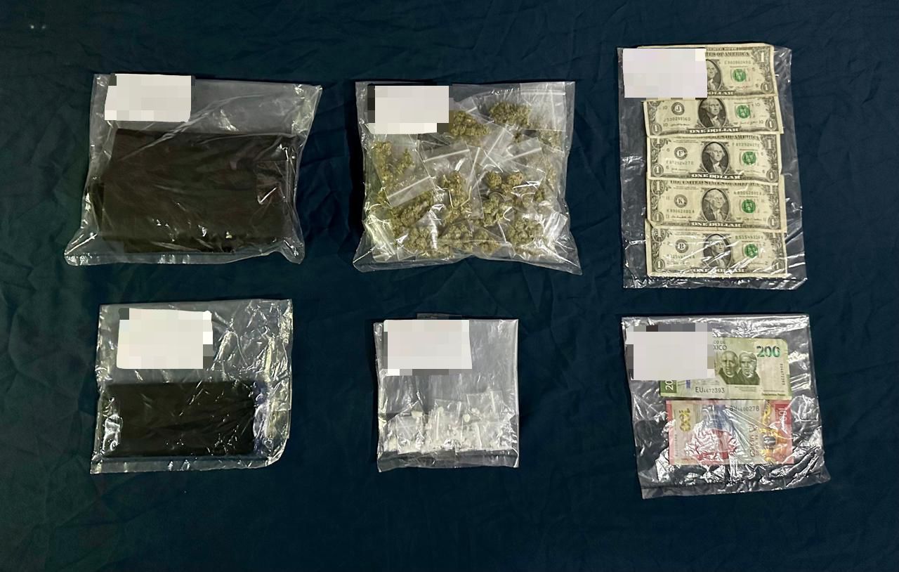 Durante la revisión preventiva, las autoridades aseguraron 32 bolsas con marihuana y 19 dosis de fragmentos sólidos similares al crack. Además de los estupefacientes, se le decomisó un teléfono celular, una bolsa ecológica, 300 pesos mexicanos y cinco dólares en efectivo. También fue asegurada la motocicleta en la que se transportaba, una unidad marca Italika tipo 200 Z en colores gris y azul, la cual no contaba con placas de circulación.