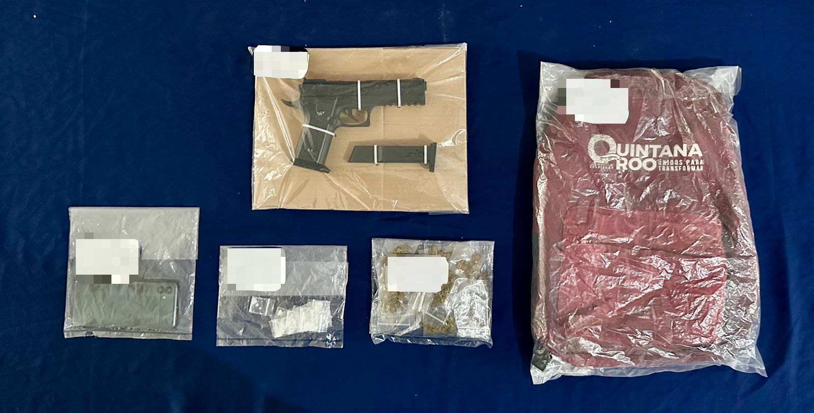 Cancún, 8 de enero.- En un operativo de vigilancia realizado en el fraccionamiento Paseos del Mar, elementos del Grupo de Investigación de la Secretaría de Seguridad Ciudadana y de la Secretaría de Marina lograron la detención de un hombre en posesión de diversas sustancias ilícitas y un arma de aire.