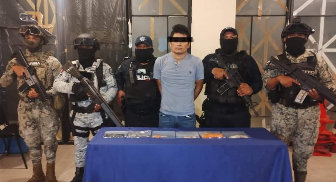 TULUM a 11 de noviembre. – En un operativo interinstitucional realizado en la intersección de las avenidas Tulum y Satélite, elementos de la Secretaría de Seguridad Pública y Protección Ciudadana de Tulum, junto con la Guardia Nacional y la Secretaría de Marina, detuvieron a un hombre en posesión de varias sustancias prohibidas.