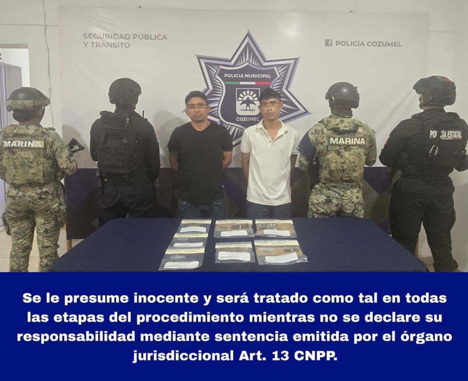 Los detenidos fueron identificados como Anyelo Efraín “N” y Raúl Enrique “N” y su captura se realizó en la colonia San Miguel II, en la calle 16 Sur, entre calle 11 Sur y calle 29 Sur en Cozumel.