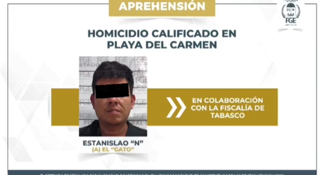 Playa del Carmen, 23 de marzo. – Elementos de la Policía de Investigación de la Fiscalía, en colaboración con la Fiscalía de Tabasco, cumplimentaron una orden de aprehensión en la ciudad de Villahermosa en contra de un hombre identificado como Estanislao N, alias El Gato.