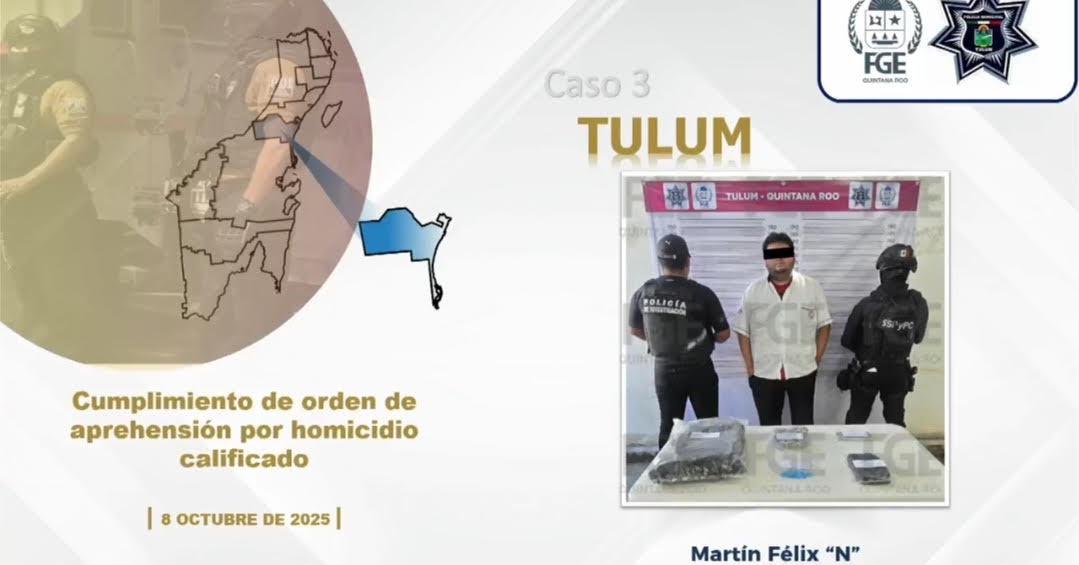 Tulum, 13 de octubre. – Agentes de la Policía de Investigación (PDI) de la Fiscalía General del Estado (FGE) cumplimentaron una orden de aprehensión contra Martín Félix N, señalado como probable participante en el delito de homicidio calificado en agravio de Dulce Dalai, una joven de 20 años asesinada el pasado 5 de octubre en la carretera Tulum – Felipe Carrillo Puerto.