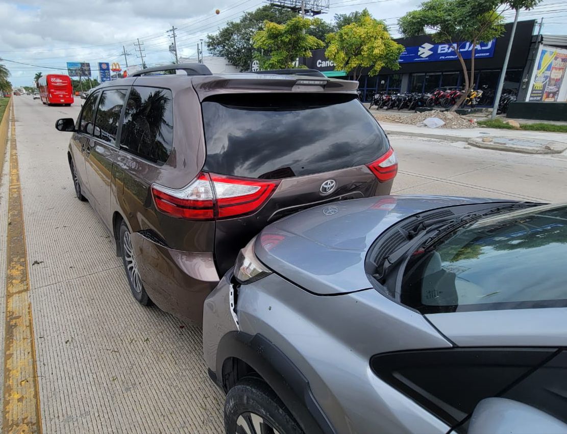 Cancún, 12 de diciembre.- Una carambola que involucró a cinco vehículos se registró en el Boulevard Colosio, frente al residencial Villa Magna de Cancún, causando caos vial en la zona.