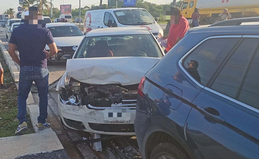 Elementos de Tránsito acudieron al lugar para realizar las diligencias correspondientes y coordinar el retiro de las unidades, mientras el tráfico se mantuvo lento durante varios minutos en uno de los accesos más transitados de Cancún.