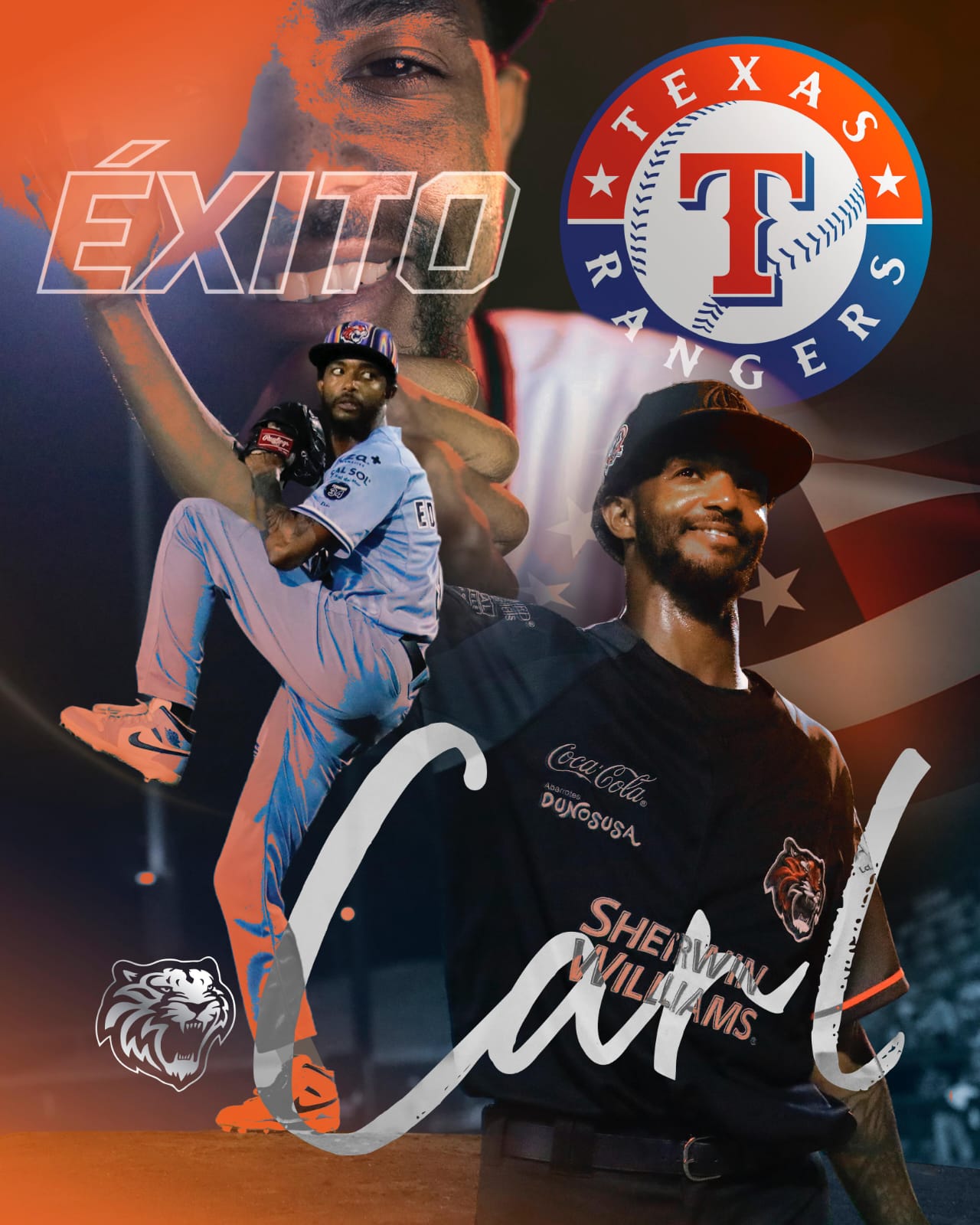 Cancún. Q. Roo (www.tigresqroo.com) 18 de julio.- La organización de los Tigres de Quintana Roo expresa su más sincero agradecimiento a Carl Edwards Jr., quien ha dado un paso importante en su carrera al firmar contrato con los Rangers de Texas en las Grandes Ligas.