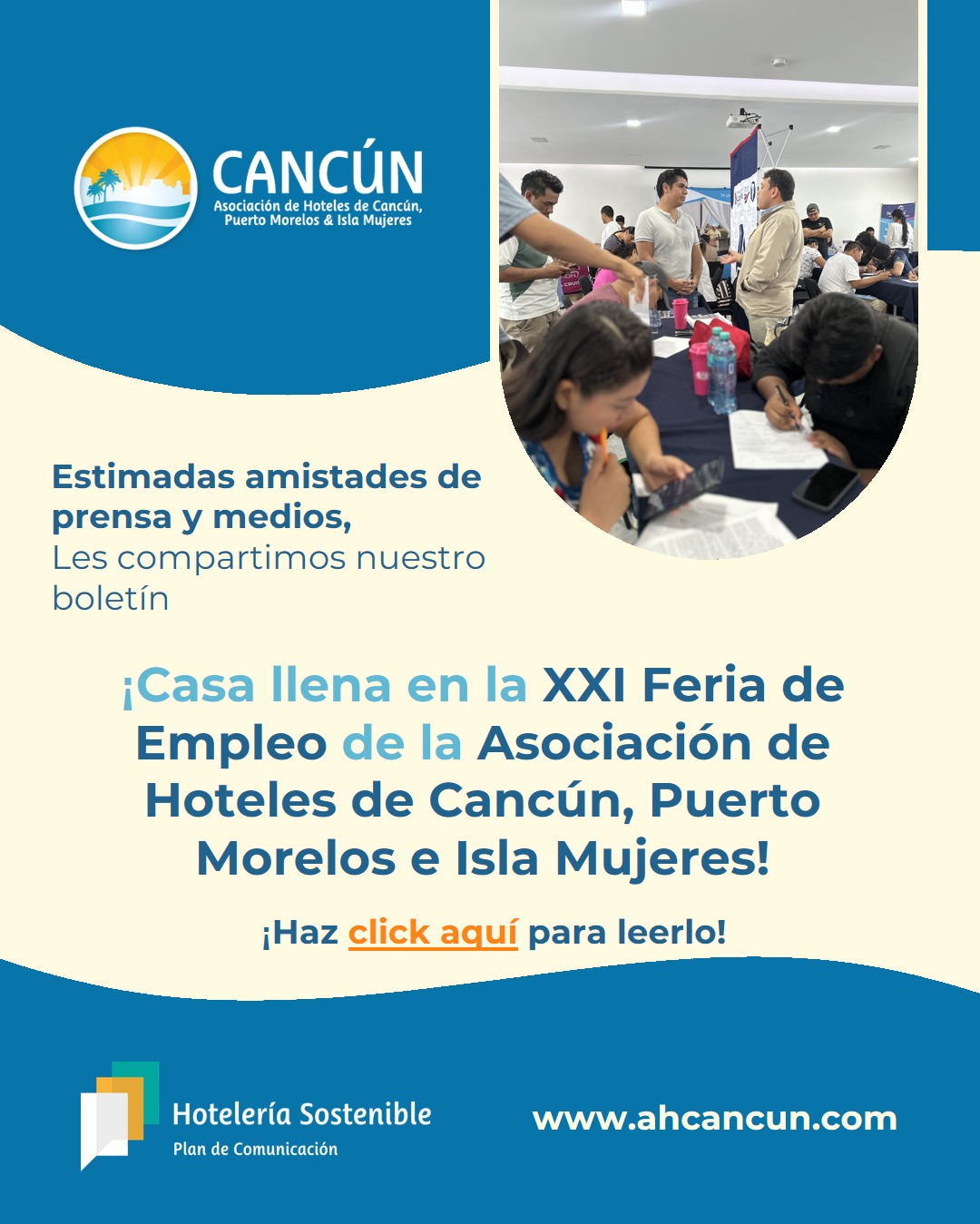 Cancún, Quintana Roo, a 05 de agosto de 2025 – Con gran auge la Asociación de Hoteles de Cancún, Puerto Morelos e Isla Mujeres realizó la XXI edición de la Feria de Empleo en sus oficinas. El evento bimestral reúne en un solo lugar a postulantes y reclutadores para facilitar la contratación de nuevos talentos en el sector turístico-hotelero, fuente económica más importante para Quintana Roo.