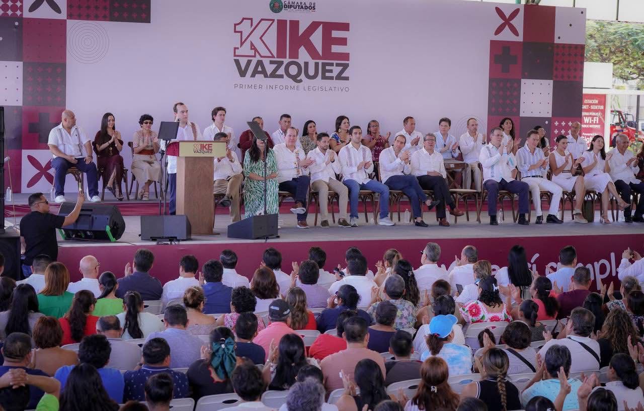 En medio de esta crisis, el alcalde Diego Castañón montó un evento para presentar el “Primer Informe” del diputado federal Enrique “Kike” Vázquez.