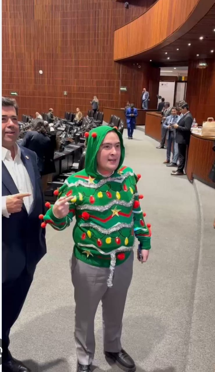 En diciembre de 2024 fue noticia por asistir al debate del presupuesto vestido como árbol de Navidad; repetía chistes sobre el “regalo del presupuesto” mientras sus padrinos se reían. Al mes siguiente fue captado agrediendo verbalmente a una diputada que pedía investigar el fuero del exfutbolista y gobernador Cuauhtémoc Blanco.