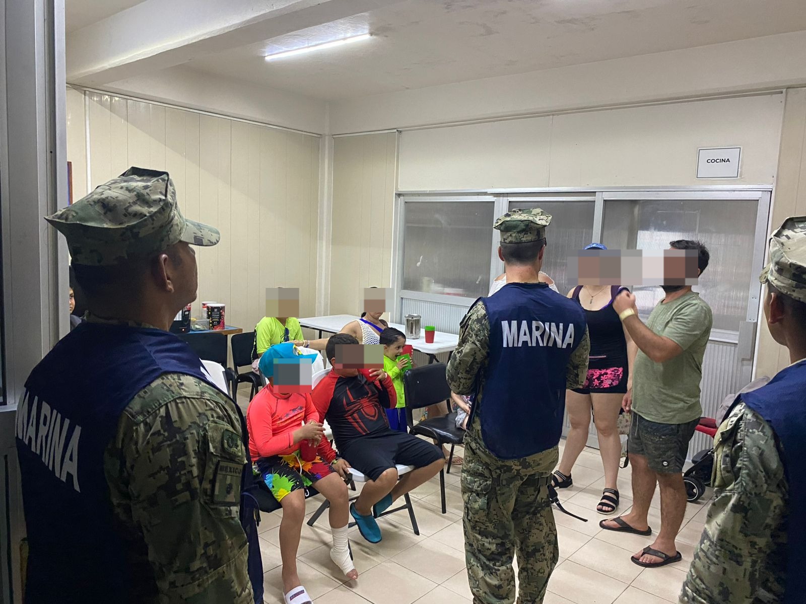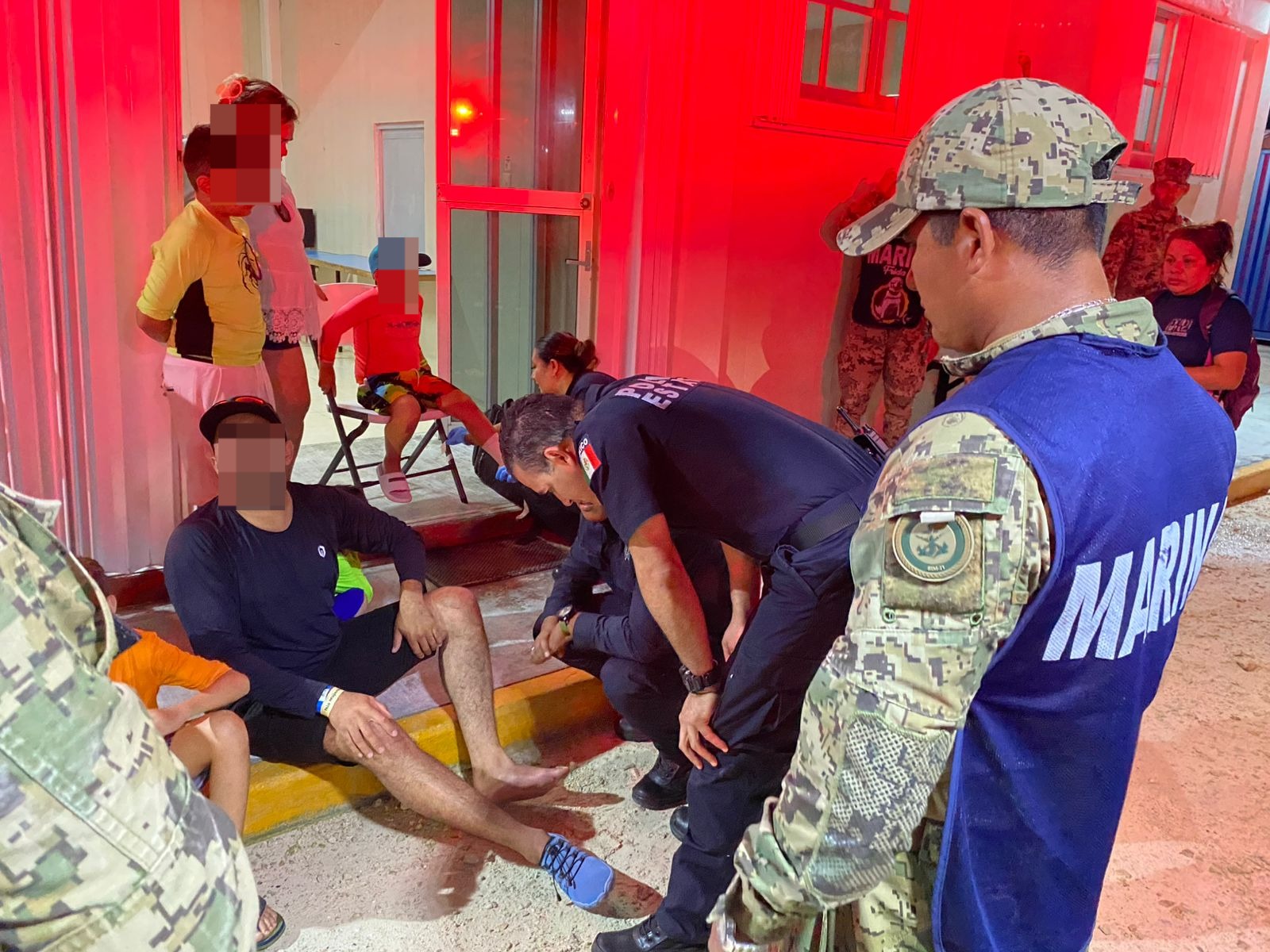 De inmediato se procedió a realizar el rescate de citadas personas, a quienes se trasladó a puerto seguro, en la Estación Naval de Puerto Juárez, donde personal naval brindó atenciones de primeros auxilios.