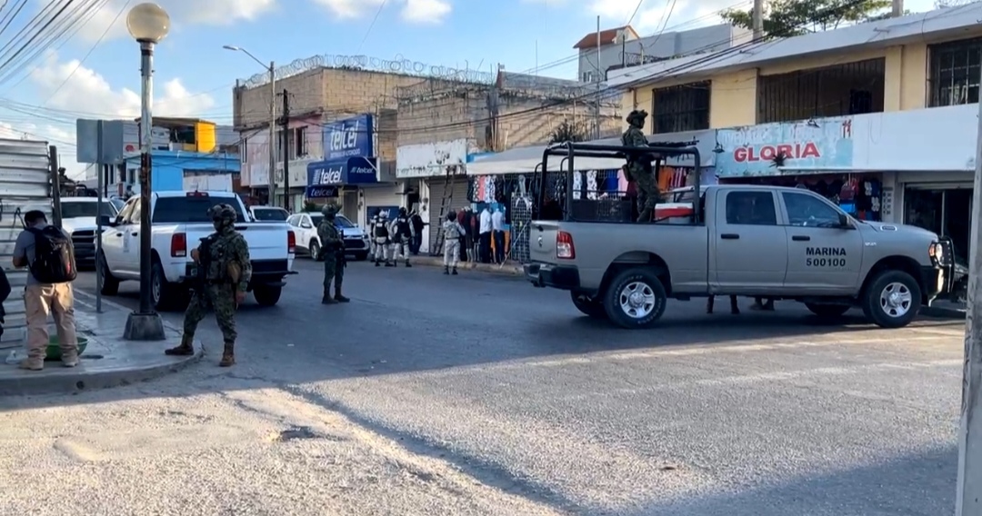 Cancún, 6 de febrero.- Un operativo conjunto entre autoridades municipales, estatales y federales, se llevó a cabo en un inmueble de la supermanzana 66, sobre la avenida Tulum, en la zona del Crucero, uno de los sectores con mayor incidencia delictiva en la ciudad.
