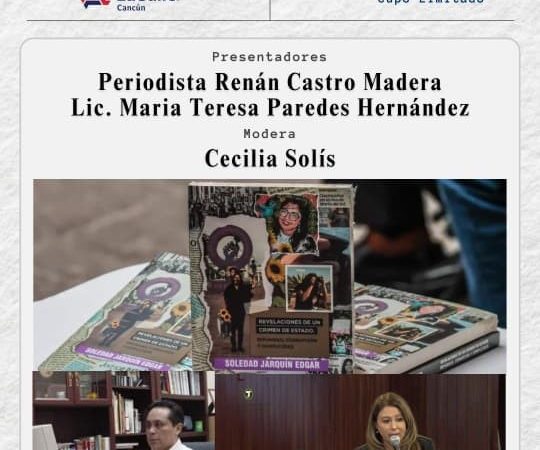 El periodista Renán Castro Madera y la Lic.María Teresa Paredes Presentarán en Cancún el Libro “Revelaciones de un Crimen de Estado” de Soledad Jarquín