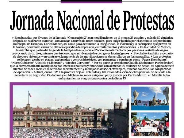 15 Nov. 2025Convocatorias en redes encendieron protestas en al menos 25 estados; la CDMX y Puebla registraron los choques más violentos Redacción / CAMBIO 22…