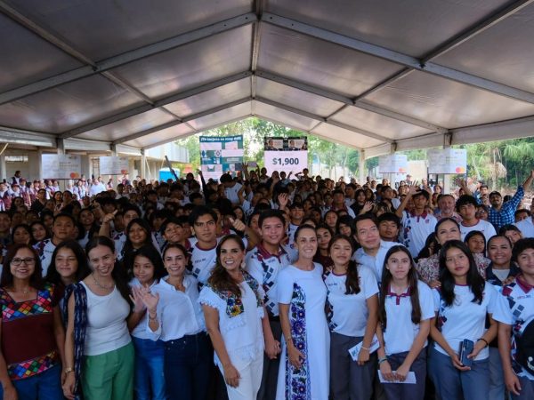 Al Iniciar su Gira por la Península Claudia Sheinbaum, Entrega Apoyos a Estudiantes de Nivel Medio Superior