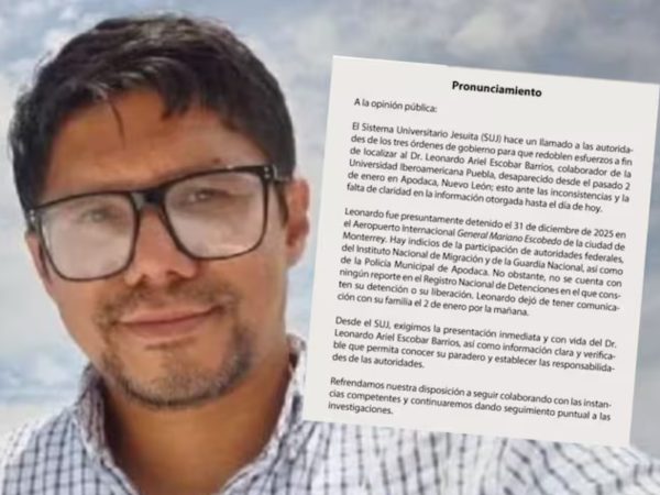 14 Ene. 2026El Sistema Universitario Jesuita señaló que hay indicios para señalar que el académico fue arrestado por autoridades federales, del Instituto Nacional de Migración, de…