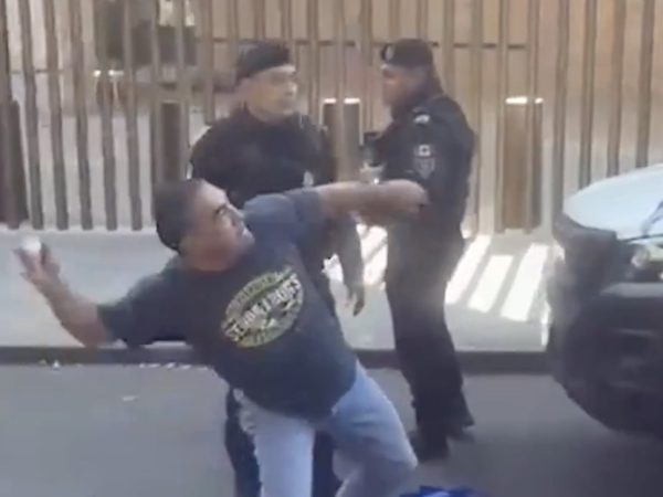 3 Ene. 2026Un manifestante que tiraba objetos sin parar a la embajada de Estados Unidos en México era observado por policías capitalinos que no hacían nada…