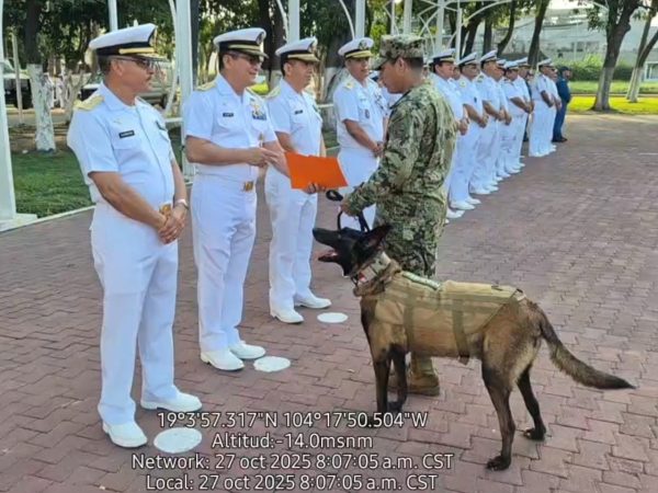 Marina Realiza Ceremonia de Retiro del Elemento Canino “Hans” en Manzanillo, Colima