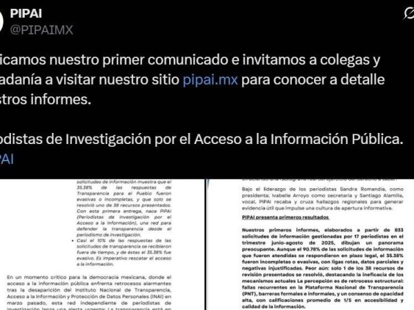 9 Oct. 2025Redacción/CAMBIO22 Periodistas residentes en México anunciaron la creación de la red independiente Periodistas de Investigación por el Acceso a la Información Pública (PIPAI), como…