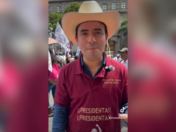 Juez de Distrito Acude al Mitin de Claudia Sheinbaum en el Zócalo Vestido de Guinda y se Autonombra “Juez del Bienestar”