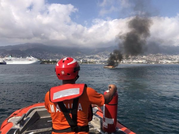 Marina Brinda Apoyo en la Sofocación de Incendio de una Embarcación en el Puerto de Acapulco, Guerrero