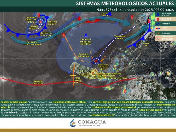 14 Oct. 2025Conagua alerta por chubascos con descargas eléctricas en Quintana Roo, Yucatán y Campeche durante la tarde y noche Chiapas registra condiciones más…