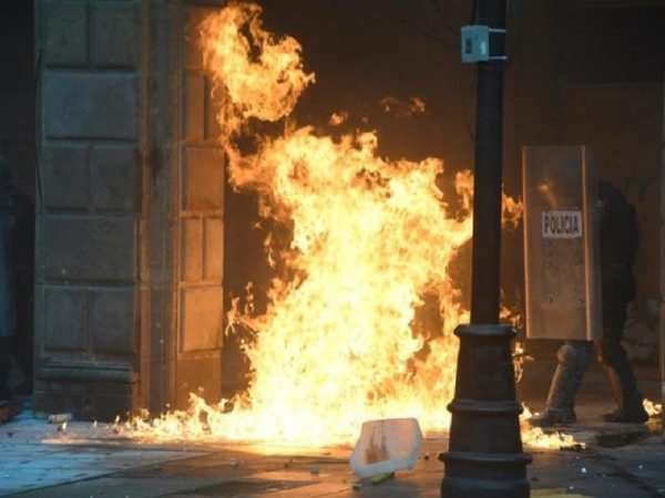 Queman a Policías: Encapuchados les Lanzan Explosivos en Marcha del 2 de Octubre