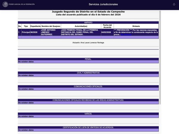 6 Feb. 2026En audiencia vía videoconferencia desde el Centro Federal de Readaptación Social, ubicado en el Estados de México, que se enlazó con el Juzgado de…
