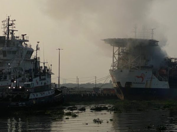 Un Buque se Incendia en el Puerto de Coatzacoalcos, Veracruz
