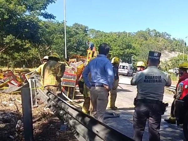 Evita Guardia Nacional y Policía Estatal que Rapiñaran Pollos de Trailer accidentado
