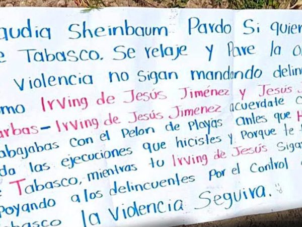 Reportan Brotes de Violencia y Narcomanta Durante Gira de Sheinbaum por Tabasco
