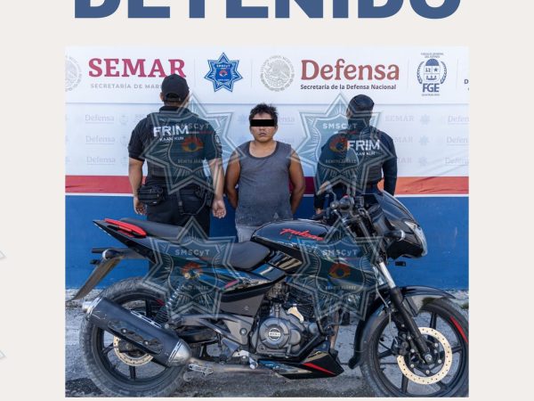 Detienen en Cancún a Hombre que Circulaba en Motocicleta Robada